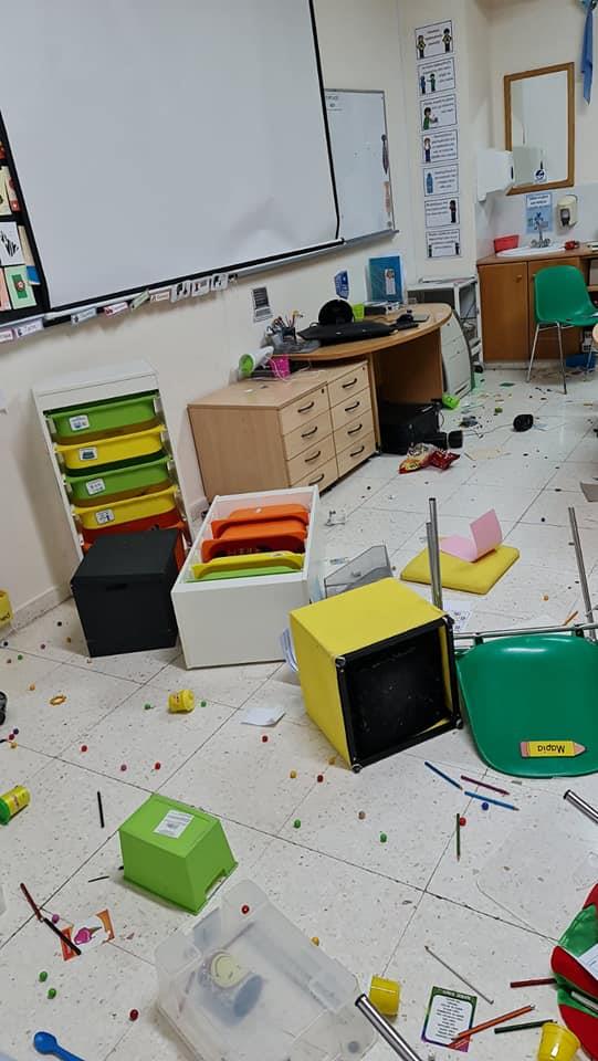 Σύμφωνα με ανάρτηση στη σελίδα του σχολείου, άγνωστοι μπήκαν στους χώρους του σχολείου και το βανδάλισαν. Όπως φαίνεται και από τις φωτογραφίες, οι δράστες έκαναν γης μαδιάμ τις αίθουσες του σχολείου, σκορπώντας τα χρωματιστά μολύβια και τα χαρτιά που ζωγραφίζουν τα παιδιά στο πάτωμα, ενώ πέταξαν τις καρέκλες.