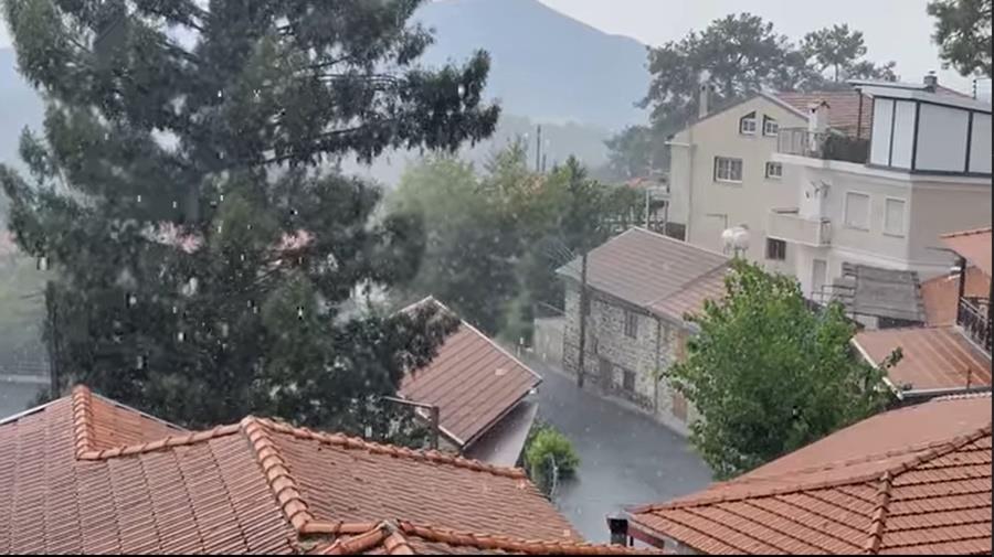 Άνοιξαν οι ουρανοί στα ορεινά το μεσημέρι της Παρασκευής στα ορεινά, τη στιγμή που ο υδράργυρος «χτυπούσε» κόκκινο.