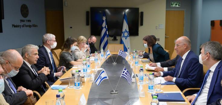 Η συνεργασίας Ελλάδας-Ισραήλ, καθώς και οι εξελίξεις σε Ανατολική Μεσόγειο και Μέση Ανατολή ήταν στο επίκεντρο των διμερών επαφών, την Κυριακή, του Υπουργού Εξωτερικών της Ελλάδας, Νίκου Δένδια, με τον Ισραηλινό ομόλογό του, Yiar Lapid, στο περιθώριο της Τριμερούς Συνάντησης Κύπρου-Ελλάδας-Ισραήλ, στα Ιεροσόλυμα.