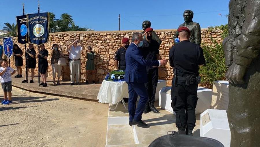Το έπος του 1955-59 αποτελεί ένα φωτεινό ορόσημο ανέφερε ο Υπουργός Υγείας, στη νεότερη ελληνική ιστορία, ένα σύμβολο ηρωισμού, ηθικού μεγαλείου και εθνικού αναβαπτίσματος. Ο Κυπριακός Ελληνισμός απέδειξε πως διέθετε τεράστια αποθέματα ηθικής δύναμης, αλλά και πίστη στις αξίες της ελευθερίας, της φιλοπατρίας, της δικαιοσύνης, της καρτερικότητας. Η γενναία κυπριακή ψυχή των παλληκαριών της ΕΟΚΑ, ορκίστηκε ότι θα αγωνιζόταν με όλες της τις δυνάμεις, αντιμετωπίζοντας τον ξένο δυνάστη, που υπερτερούσε σε υλικά μέσα και αριθμό. Το γεγονός αυτό προκύπτει αβίαστα από το ήθος και τις συνθήκες της θυσίας των Ηρώων του Αχυρώνα Λιοπετρίου, που πότισαν με το άγιο αίμα τους το φουντωμένο δέντρο της κυπριακής ελευθερίας, ξεπερνώντας κατά πολύ τα όρια του χώρου και του χρόνου. Άνθρωποι μικροί και ταυτόχρονα τόσο μεγάλοι, απλοί, ταπεινοί μα και σπουδαίοι, ανώτεροι με ανεπτυγμένη κοινωνική συνείδηση, σεβασμό και αφοσίωση στο κοινό καλό, είπε.