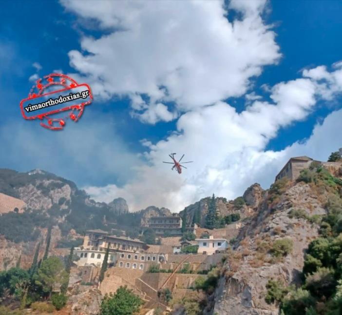 Σύμφωνα με την Πυροσβεστική η φωτιά ξέσπασε σε δύσβατο βραχώδες σημείο με χαράδρες χωρίς να απειλεί για την ώρα κάποια μονή ή σκήτη.