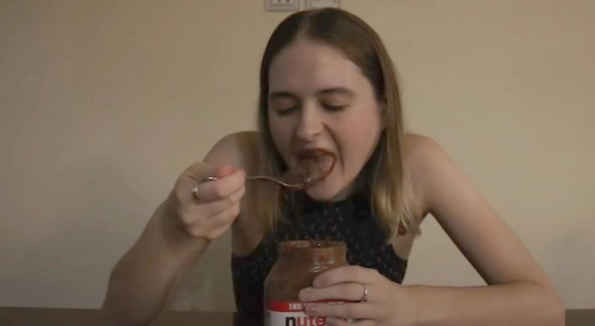 Στο βίντεο λέει: «Κοντεύω να φάω ένα κιλό Nutella. Τη λατρεύω και ανυπομονούσα να το κάνω. Ελπίζω να απολαύσετε το βίντεο». Μέσα σε 3 λεπτά και 56 δευτερόλεπτα κατάφερε να αδειάσει όλο το βίντεο, δείχνοντας την ώρα που χρειάστηκε.