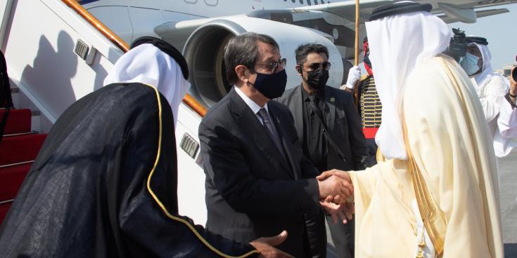 Ανακοίνωση της προεδρίας αναφέρει ότι τον Πρόεδρο της Δημοκρατίας, ο οποίος συνοδευόταν από τα μέλη της κυπριακής αντιπροσωπείας, υποδέχθηκε στο κτήριο του Συμβουλίου, ο Αναπληρωτής Πρωθυπουργός του Μπαχρέιν Shaikh Mohammed bin Mubarak Al Khalifa.