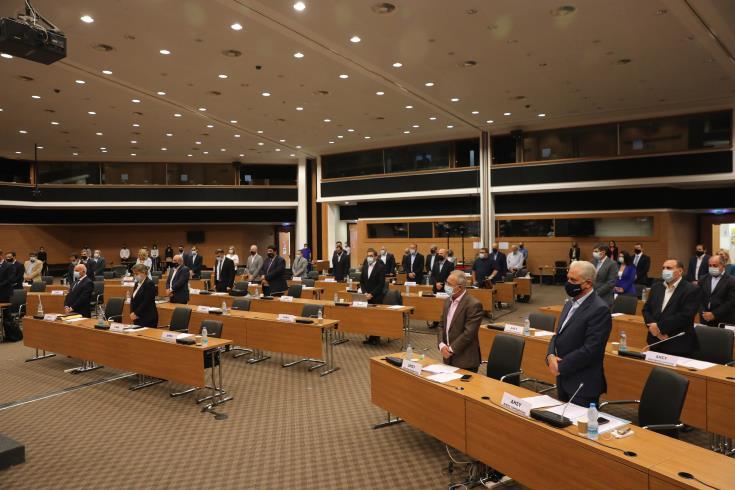 Ο Προεδρεύων της Βουλής κάλεσε τους παρόντες Βουλευτές «να τηρήσουμε ενός λεπτού σιγή στη μνήμη του Μίκη Θεοδωράκη, καθώς και των θυμάτων της Μικρασιατικής Καταστροφής και της τρομοκρατικής επίθεσης στους Δίδυμους Πύργους».