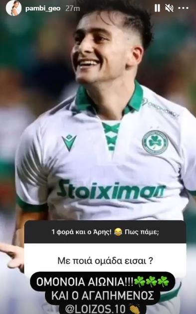 Συγκεκριμένα, σε ανάρτηση της η Κύπρια ηθοποιός κλήθηκε να απαντήσει ποια είναι η ομάδα που υποστηρίζει και ταυτόχρονα, ανέφερε ότι ο νεαρός άσος των πρασίνων είναι ο αγαπημένος της παίκτης.