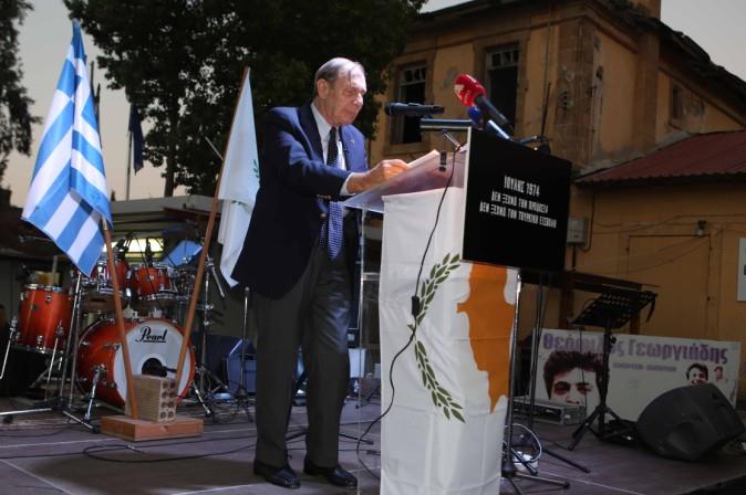 Επεσήμανε ότι κανείς Πρόεδρος έχει εξουσιοδότηση να υπογράψει την κατάλυση της Κυπριακής Δημοκρατίας, ότι πρέπει να δοθεί τέλος στην εποικοδομητική ασάφεια και την παραπληροφόρηση και υπέδειξε: “υπερασπιστείτε το δίκαιο, την αξιοπρέπεια και την ιστορία σας. Σταθείτε άξιοι της ιστορίας σας, της εθνικής σας ανεξαρτησίας και αξιοπρέπειας”.