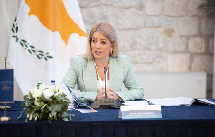 Στο πλαίσιο συζήτησης για τις προκλήσεις και τα πλεονεκτήματα που σχετίζονται με τις καινοτομίες και τον εκσυγχρονισμό των κοινοβουλίων των μικρών κρατών, η Πρόεδρος της Βουλής ανέφερε ότι η σημασία της αξιοποίησης των εργαλείων της τεχνολογίας, υπήρξε καθοριστική στην επιτυχή προσαρμογή των κοινοβουλίων στα νέα δεδομένα που επέφερε η πανδημία του COVID-19.