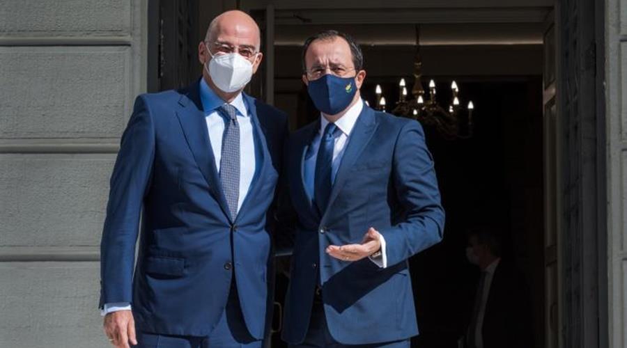 Από την πλευρά του, ο Έλληνας Υπουργός Εξωτερικών Νίκος Δένδιας διαβεβαίωσε ότι «η Ελλάδα θα βρίσκεται πάντα στο πλευρό της Κύπρου, προσηλωμένη στις προσπάθειες που καταβάλλονται για μια δίκαιη και βιώσιμη λύση του Κυπριακού», μια λύση, όπως είπε «διζωνικής, δικοινοτικής ομοσπονδίας στη βάση των σχετικών αποφάσεων του Συμβουλίου Ασφαλείας των Ηνωμένων Εθνών και του ευρωπαϊκού κεκτημένου».