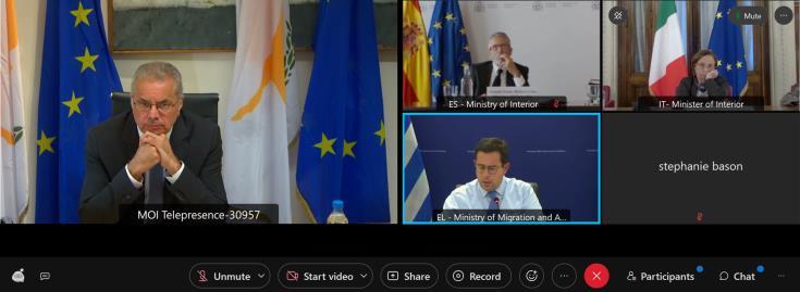 O Υπουργός Εσωτερικών ενημέρωσε, επίσης, τους MED5 για την πρόσφατη επίσκεψη της Ευρωπαίας Επιτρόπου Εσωτερικών Υποθέσεων Ύλβας Γιόχανσον στην Κύπρο, κατά την οποία η Επίτροπος ενημερώθηκε και για τις θέσεις των MED5 για λήψη μέτρων για προστασία των εξωτερικών συνόρων της Ευρωπαϊκής Ένωσης, αλλά και εποπτείας της πράσινης γραμμής, ανάληψη πρωτοβουλιών εκ μέρους της Ευρωπαϊκής Επιτροπής για σύναψη συμφωνιών επιστροφών με ασφαλείς τρίτες χώρες και υιοθέτηση μηχανισμών για αποτελεσματικές διαδικασίες επιστροφών.