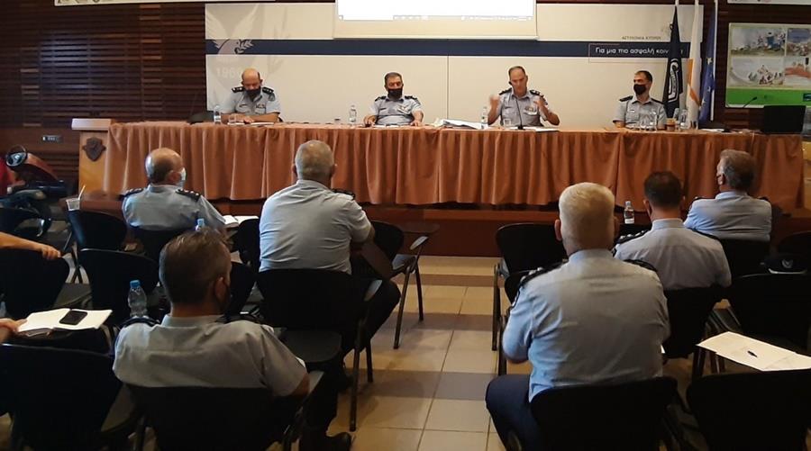 Η οδική ασφάλεια και η πρόληψη των θανατηφόρων και σοβαρών τροχαίων συγκρούσεων συζητήθηκαν σήμερα, στο πλαίσιο συνάντησης του Αρχηγού Αστυνομίας κ. Στέλιου Παπαθεοδώρου, με τους Διευθυντές των Επαρχιακών Αστυνομικών Διευθύνσεων, τους υπευθύνους των Επαρχιακών Κλάδων Τροχαίας και της διεύθυνσης του Τμήματος Τροχαίας Αρχηγείου.