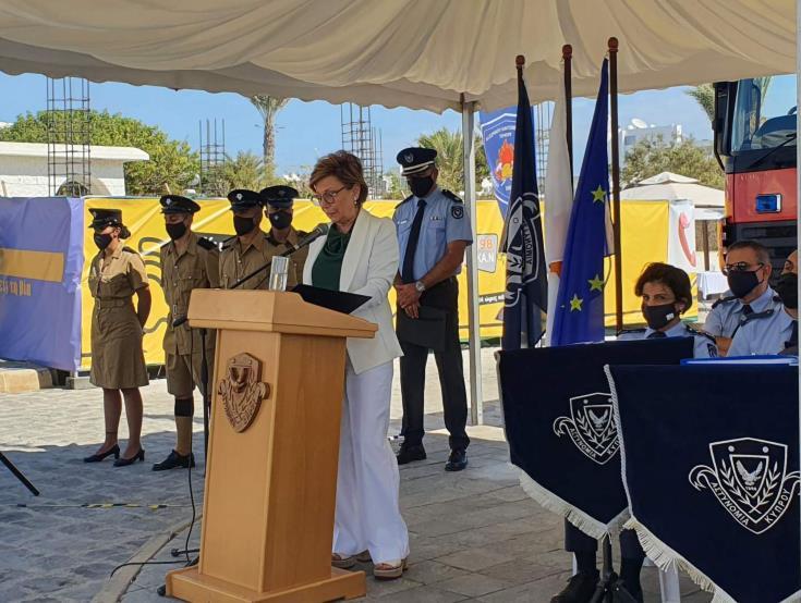 Σε χαιρετισμό της, κατά την ημέρα Αστυνομίας που γιορτάζεται σήμερα, η Υπουργός Δικαιοσύνης ανέφερε πως «στο μυαλό της κοινωνίας, όπως είναι φυσικό, συνήθως επικρατεί η εικόνα της Αστυνομίας ως η αρχή επιβολής του Νόμου, η οποία υιοθετεί μια αυστηρή στάση στην προσπάθειά της να διατηρήσει την τάξη και την ασφάλεια», σημειώνοντας ωστόσο ότι «σήμερα δίνεται η ευκαιρία να παρουσιάσουμε το ανθρώπινο πρόσωπο της Αστυνομίας και της Αστυνομίας που βρίσκεται πάντοτε στην υπηρεσία του πολίτη, με στόχο την εξασφάλιση ενός λειτουργικού περιβάλλοντος ευταξίας και ασφάλειας».