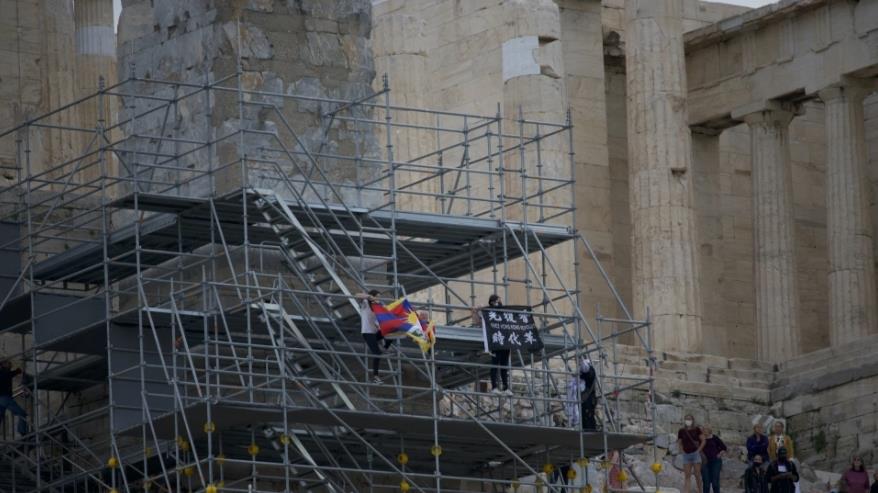 Οι ακτιβιστές οι οποίοι ήταν από το Θιβέτ, την σημαία του οποίου και κρέμασαν στην Ακρόπολη και, το Χονγκ Κονγκ, φώναξαν συνθήματα για μποϊκοτάζ των Χειμερινών Ολυμπιακών Αγώνων του 2022 οι οποίοι θα διεξαχθούν στο Πεκίνο. Η επέμβαση της Ελληνικής Αστυνομίας και συγκεκριμένα της ομάδας «ΔΡΑΣΗ» ήταν άμεση με αποτέλεσμα οι τρεις ακτιβιστές να συλληφθούν ενώ σε βάρος τους σχηματίστηκε δικογραφία.