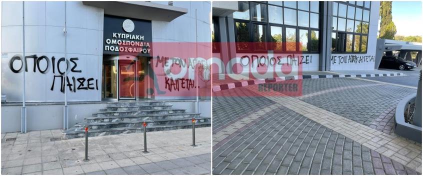 Σημειώνεται ότι, νωρίτερα σε ανακοίνωση του ο Κυπριακός Οργανισμός Αθλητισμού, «καταδικάζει την απαράδεκτη ενέργεια ανεγκέφαλων να αναγράψουν συνθήματα στις κτηριακές εγκαταστάσεις των κεντρικών γραφείων του ΚΟΑ, προσβλητικού περιεχομένου που αφορούν το ποδόσφαιρο».