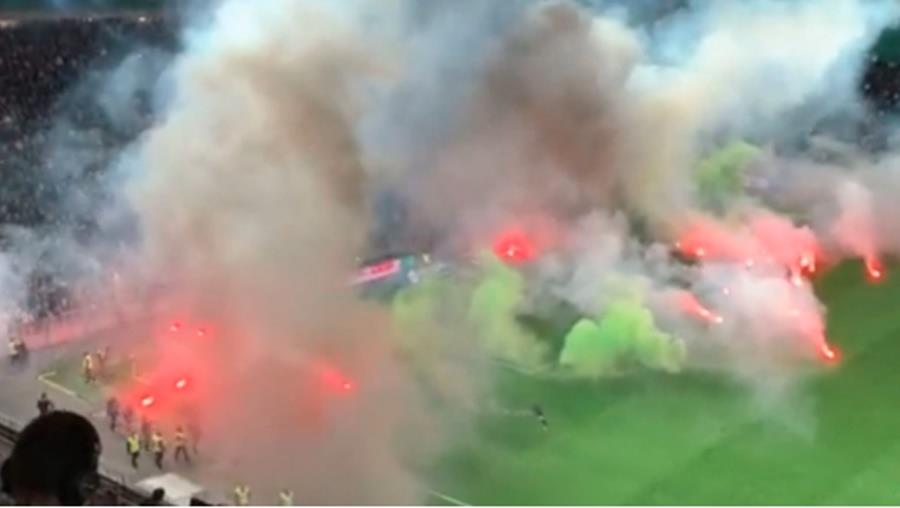 Διακόπηκε αγώνας λόγω... φωτοβολίδων, καπνογόνων και επεισοδίων-Κάηκαν τα δίκτυα