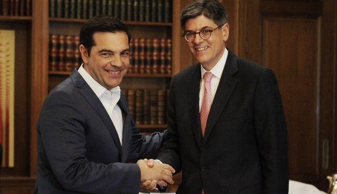 Ο υπουργός Οικονομικών των ΗΠΑ εξέφρασε τη χαρά του που συναντά τον κ. Τσίπρα στην Αθήνα και τον συνεχάρη «για μία πολύ μεγάλη, σκληρή δουλειά και πρόοδο που έχει γίνει τον τελευταίο χρόνο». «Χρειάζεται να γίνει κι άλλη δουλειά και είναι πολύ σημαντικό η Ελλάδα να συνεχίσει να εφαρμόζει τις μεταρρυθμίσεις που περιγράψατε και να κάνει πρόοδο σε τομείς, όπως οι ιδιωτικοποιήσεις», συμπλήρωσε.