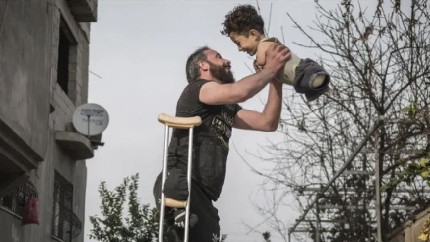 «Ιστορία της φωτογραφίας: Ενώ ψωνίζει στην αγορά στη Συρία, ο Μουνζίρ χάνει το δεξί του πόδι λόγω μιας βόμβας που πέφτει. Η σύζυγός του, η οποία ήταν έγκυος εκείνη την ώρα, εισπνέει το αέριο σαρίν (νεύρων) που απελευθερώθηκε. Ο Μουσταφά, που ήρθε στον κόσμο, ανοίγει τα μάτια του στον κόσμο χωρίς κανένα άκρο με την επίδραση του αερίου σαρίν» γράφει ο φωτογράφος στο Instagram.