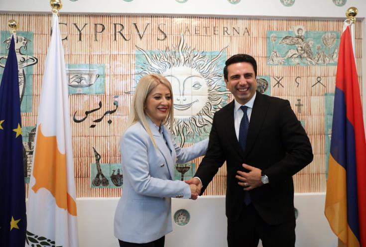 Την αμοιβαία υποστήριξή τους στο Κυπριακό και το θέμα του Ναγκόρνο Καραμπάχ, εξέφρασαν ο Πρόεδρος της Εθνικής Συνέλευσης της Δημοκρατίας της Αρμενίας Άλεν Σιμονιάν και η Πρόεδρος της Βουλής των Αντιπροσώπων Αννίτα Δημητρίου, σε δηλώσεις τους μετά από τη συνάντηση που είχαν το πρωί της Δευτέρας.