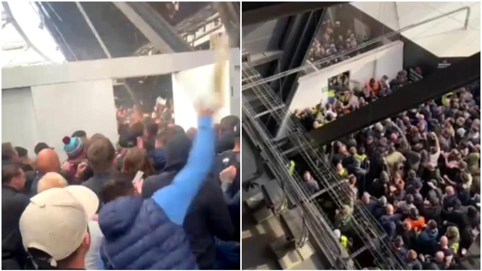 Στα βίντεο που δημοσιοποίησε η «Daily Mail» καταγράφεται η σκηνή της έντασης ανάμεσα στους οπαδούς των δυο ομάδων του Λονδίνου. Το προσωπικό ασφαλείας προσπάθησε να διαχωρίσει τις δυο ομάδες των οπαδών, όμως οι εμπλεκόμενοι γρονθοκοπούσαν ο ένας τον άλλον, ενώ πετούσαν και πλαστικά ποτήρια με μπύρα.