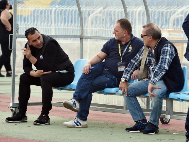 Ο φωτογραφικός φακός, συνέλαβε τον ισχυρό άνδρα των γαλαζοκιτρίνων, Πρόδρομο Πετρίδη στον πάγκο να συζητά με τον Σωφρόνη Αυγουστή.