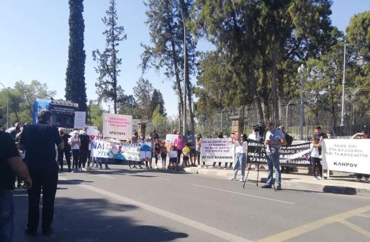 Εκδήλωση διαμαρτυρίας έξω από το Προεδρικό Μέγαρο ενάντια στην απόφαση για μετακίνηση ασφαλτικού εργοστασίου στην περιοχή Μιτσερού, διοργάνωσε η Ομάδα Πρωτοβουλίας «Κοινότητες εν Δράσει».