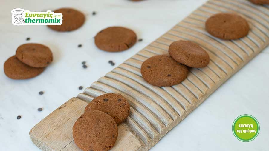 Βάλτε στον κάδο 125 γρ. βούτυρο σε κομμάτια, 2 κουταλιές απαλό φιστικοβούτυρο, 1 αυγό, 125 γρ. καστανή μαλακή ζάχαρη, 1 κουταλιά κακάο, 200 γρ. αλεύρι και αναμείξτε 30 δευτερόλεπτα/ταχύτητα 5.