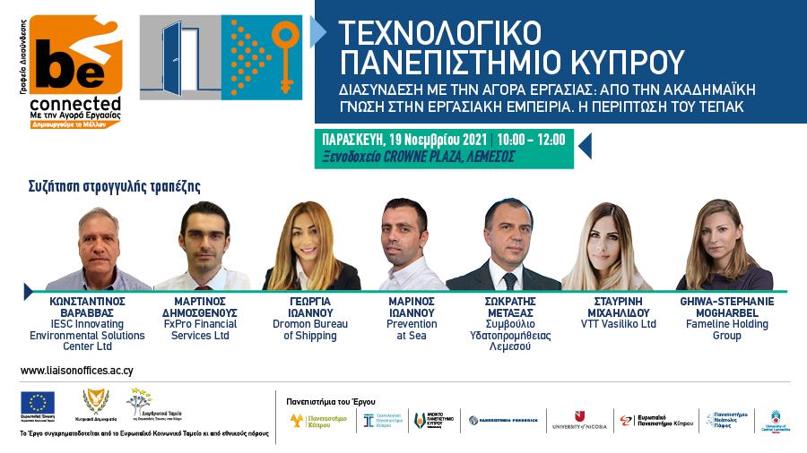 Οργανωτές: «Διασύνδεση με την Αγορά Εργασίας: Από την ακαδημαϊκή γνώση στην εργασιακή εμπειρία. Η περίπτωση του ΤΕΠΑΚ», Τεχνολογικό Πανεπιστήμιο Κύπρου