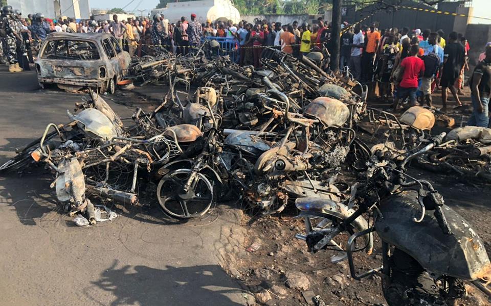 Η τραγωδία εκτυλίχθηκε όταν βυτιοφόρο συγκρούστηκε με άλλο βαρύ όχημα σε πρατήριο καυσίμων σε βιομηχανική ζώνη της πρωτεύουσας Φριτάουν, προτού εκραγεί και ξεσπάσει φωτιά.