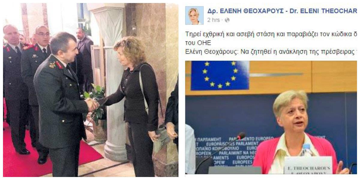Η Δρ. Θεοχάρους προσθέτει: «Δεν έχει θέση στην Κυπριακή Δημοκρατία. Δεν μπορεί να χαιρετά και να χαριεντίζεται με τον διοικητή των κατοχικών δυνάμεων . Αυτή ήταν δική της και όχι δική μας απόφαση. Δεν μας σέβεται και εγείρεται πλέον πολιτικό, διπλωματικό και ηθικό θέμα το οποίο κανείς δεν δικαιούται να αποσιωπήσει».