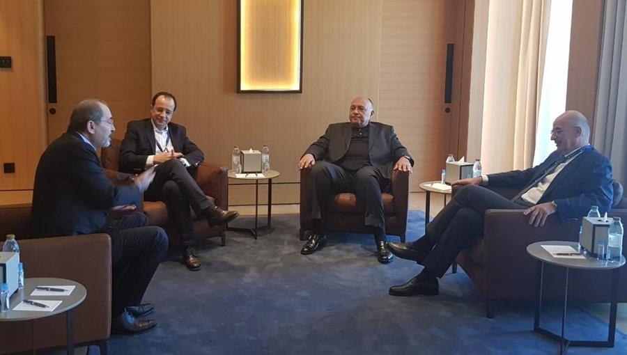 Συνάντηση των Υπουργών Εξωτερικών Κύπρου, Αιγύπτου, Ελλάδας και Ιορδανίας πραγματοποιήθηκε το πρωί στο Ντουμπάι στο περιθώριο των εργασιών του Sir Bani Yas Forum που βρίσκεται σε εξέλιξη στο Ντουμπάι, σύμφωνα με τον Υπουργό Εξωτερικών Νίκο Χριστοδουλίδη.