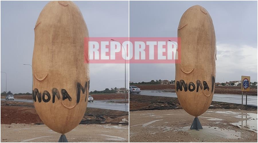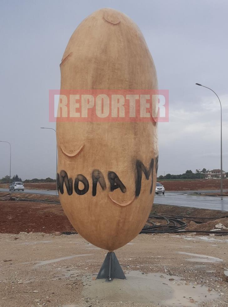 Άγνωστοι βανδάλισαν το μνημείο πατάτας στην Ξυλοφάγου, γράφοντας με σπρέι οπαδικά συνθήματα.