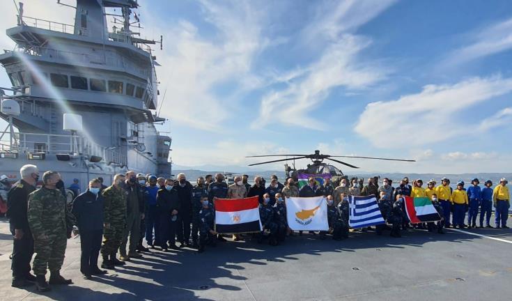 Την αεροναυτική άσκηση «ΜΕΔΟΥΣΑ 11», η οποία διεξάγεται στην περιοχή της Κρήτης με τη συμμετοχή της Ελλάδας, της Αιγύπτου, των Ηνωμένων Αραβικών Εμιράτων και της Κυπριακής Δημοκρατίας, παρακολούθησε, τη Δευτέρα 22 Νοεμβρίου, ο Υπουργός Άμυνας της Κύπρου Χαράλαμπος Πετρίδης.