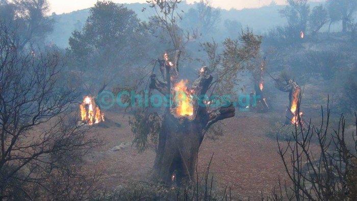 Σχεδόν ολοκληρωτική είναι η καταστροφή στις καλλιέργειες των μαστιχόδεντρων στα χωριά της νότιας Χίου Ελάτα, Βέσσα και Λιθί, από τη μεγάλη σημερινή δασική πυρκαγιά.