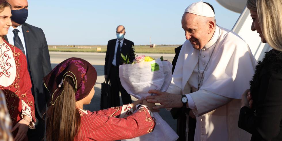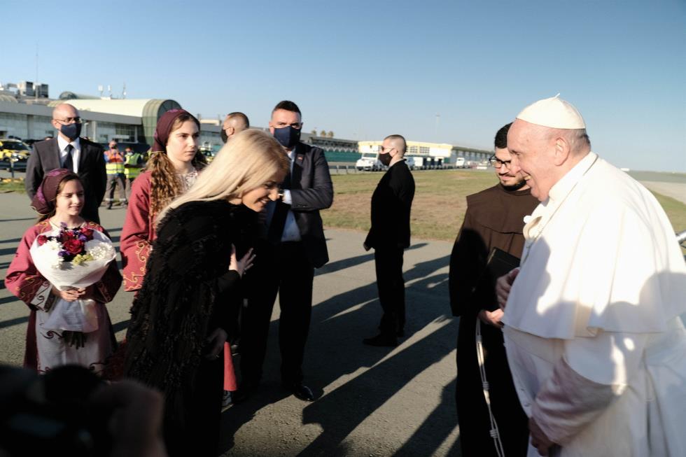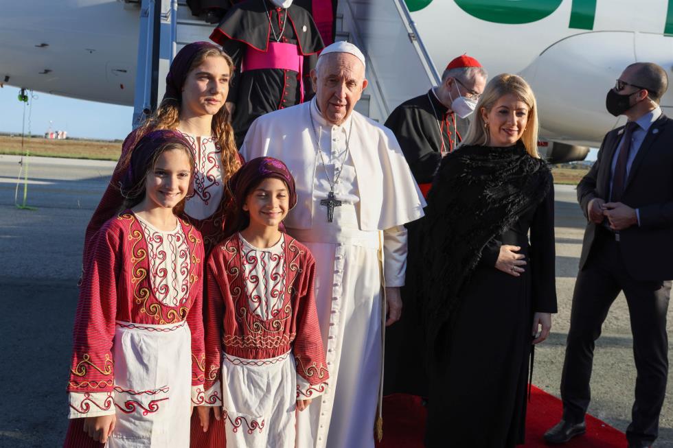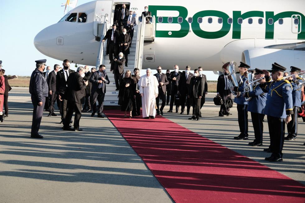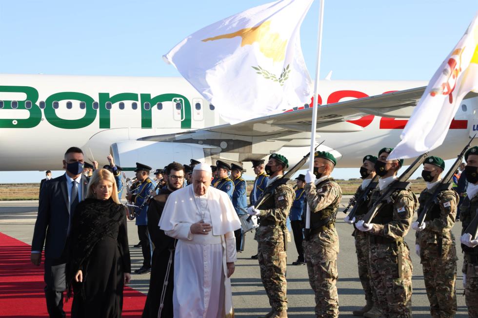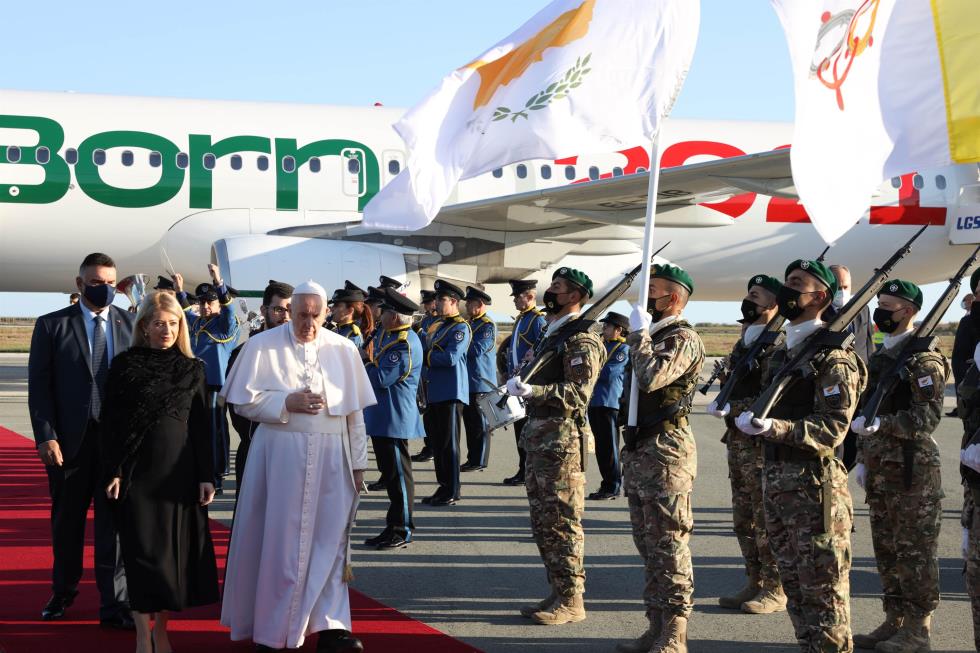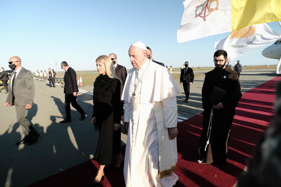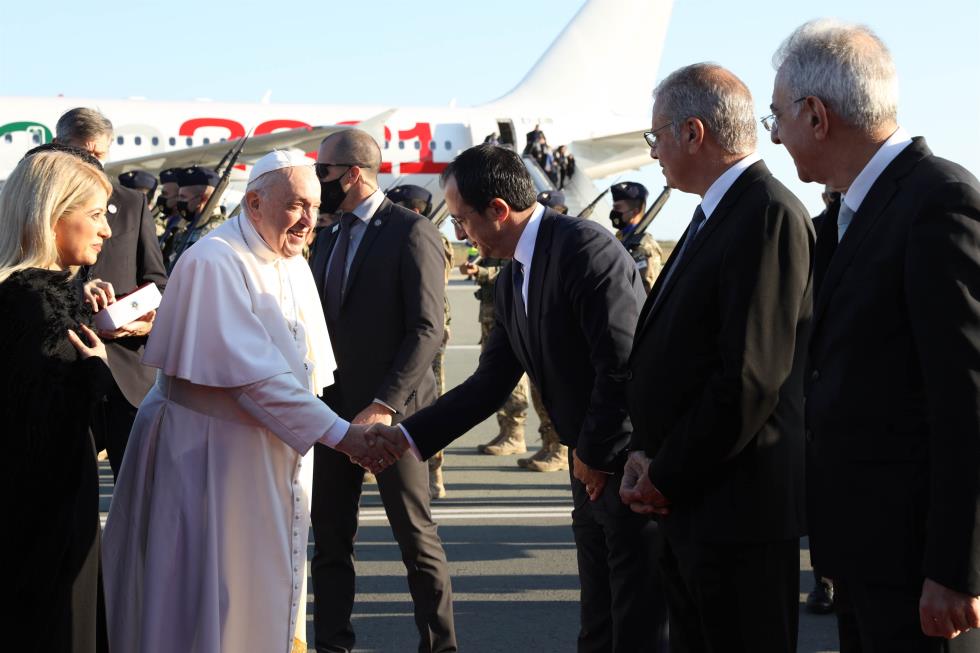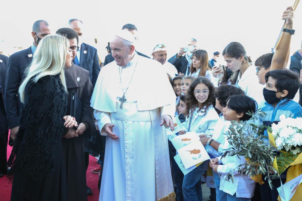 Στην Κύπρο έφτασε στις 15:00 ο Πάπας Φραγκίσκος. Στο κόκκινο χαλί, τον Πάπα υποδέχθηκε στην Κύπρο, η Πρόεδρος της Βουλής των Αντιπροσώπων Αννίτα Δημητρίου.