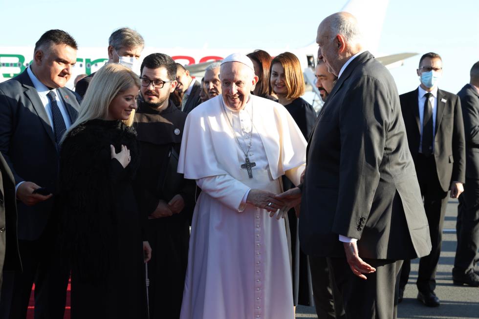 Ο Πάπας Φραγκίσκος εισήλθε για λίγα λεπτά στον χώρο VIP του παλαιού Αεροδρομίου Λάρνακας και στη συνέχεια η αυτοκινητοπομπή αναχώρησε για τη Λευκωσία συνοδεία ισχυρής αστυνομικής δύναμης.