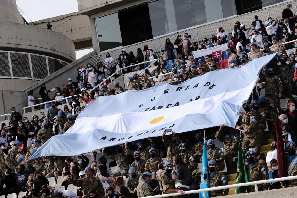 Ο κόσμος κρατούσε σημαίες, της Κύπρου, του Βατικανό και του Λιβάνου. Πολλοί έφεραν φανέλες με τυπωμένη τη φωτογραφία του Πάπα. Υπήρχαν και μέλη της ειρηνευτικής δύναμης με σημαίες των χωρών τους. Εκτός σταδίου στήθηκαν γιγαντοοθόνες για τη λειτουργία για να μπορούν να παρακολουθήσουν όσοι πιστοί δεν κατάφεραν να εξασφαλίσουν εισιτήριο για είσοδο στον χώρο.