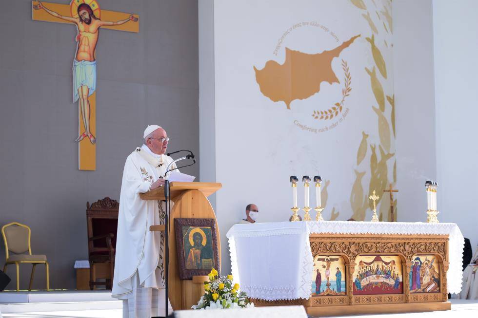 Ο Ποντίφικας, ευχήθηκε η Κύπρος από ένα διαιρεμένο νησί να μετατραπεί σε ένα «εργαστήριο αδελφοσύνης», καυτηριάζοντας ταυτόχρονα την «αδιαφορία» που επικρατεί έναντι των δεινών που περνούν όσοι αναγκάζονται να εγκαταλείψουν τη χώρα τους σε ένα επικίνδυνο ταξίδι, κυνηγώντας τα όνειρά τους.