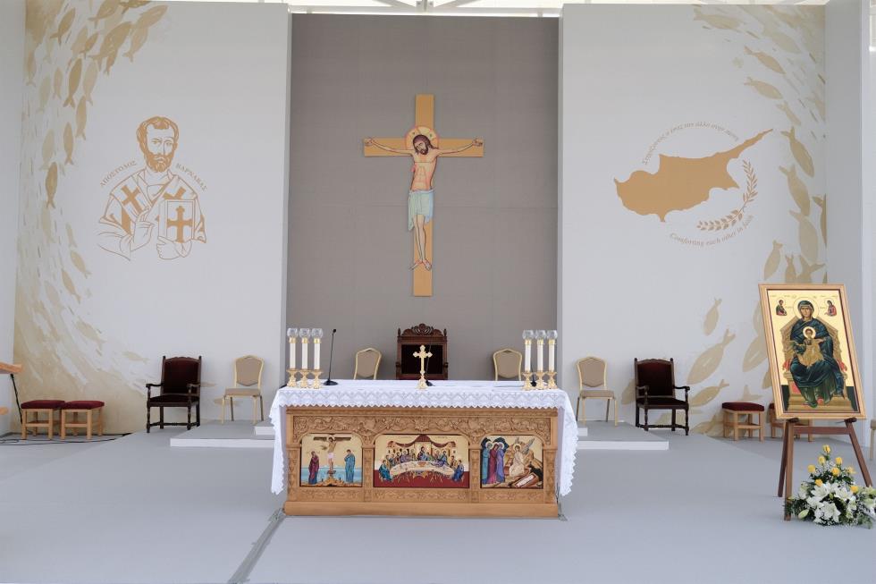 Εδώ στην Κύπρο αναπνέω λίγο από τη χαρακτηριστική ατμόσφαιρα των Αγίων Τόπων όπου η αρχαιότητα και η ποικιλία των χριστιανικών παραδόσεων εμπλουτίζουν τον προσκυνητή", ανέφερε ο Ποντίφικας μετά το πέρας της Θείας Λειτουργίας.