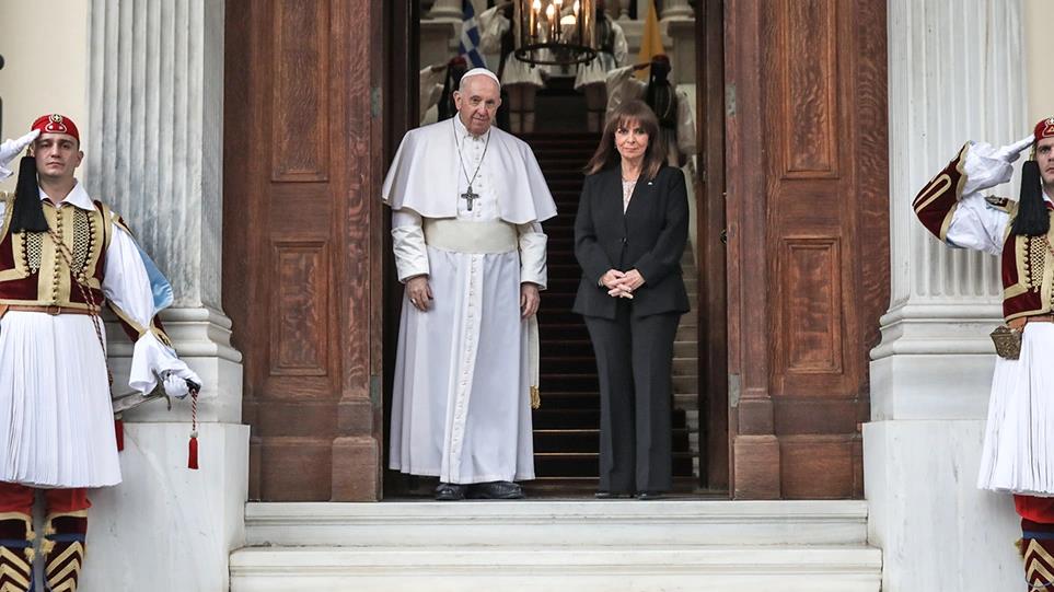Αυτή την ώρα είναι σε εξέλιξη οι προσφωνήσεις του Πάπα και της Προέδρου της Ελληνικής Δημοκρατίας, Κατερίνας Σακελλαροπούλου. «Με ιδιαίτερη τιμή και συγκίνηση σας υποδέχομαι», είπε στην αρχή της ομιλίας της η Κατερίνα Σακελλαροπούλου τονίζοντας ότι η επίσκεψη έχει μεγάλη συμβολική αξία καθώς «υποδηλώνει το υψηλό ενδιαφέρον σας για την περιοχή και την ευρύτερη Μεσόγειο, καθώς και τη διαρκή μέριμνά σας για τον θρησκευτικό διάλογο και την οικουμενικότητα της χριστιανοσύνης. Έχει επίσης μεγάλη συμβολική αξία, δεδομένου ότι φέτος εορτάζουμε τα 200 χρόνια από την έναρξη της Ελληνικής Επανάστασης κατά του οθωμανικού ζυγού, που οδήγησε στη δημιουργία του σύγχρονου Ελληνικού Κράτους. Ο λαός μας εκτιμά την αγάπη σας, καθώς και την εκ μέρους σας αναγνώριση της σημαντικής συμβολής του ελληνικού πνεύματος στον Δυτικό Πολιτισμό και τη Χριστιανική Θρησκεία. Το ισχυρό μήνυμα της πίστης και της αδελφοσύνης που μας μεταφέρετε, στα χνάρια των Αποστόλων, συμβολίζει την αναφορά της Εκκλησίας στις καταβολές της, στις πηγές της ενότητας και της σύμπνοιας, στη σοφία και τη χαρά του Ευαγγελίου. Σε καιρούς δύσκολους, με μεγάλες δοκιμασίες για την ανθρωπότητα, όπως η προσφυγική και μεταναστευτική κρίση, η φτώχεια, η κλιματική αλλαγή και η πανδημία, η συμβολή της θρησκείας και της Εκκλησίας δεν έχει μόνον υπαρξιακή σημασία και δεν περιορίζεται στο πλήρωμά της. Συναρτάται ευθέως με την πολιτική της φροντίδας και του ανθρωπισμού και διανοίγει δρόμους για την ειρηνική συνύπαρξη και ευημερία όλων μας. Η διαφύλαξη της ανθρώπινης αξιοπρέπειας και της κοινωνικής συνοχής είναι το στοίχημα που νοηματοδοτεί τις σχέσεις των εκκλησιαστικών και των κοσμικών αρχών, σε μια παγκόσμια κοινωνία με ανεξάντλητες δυνατότητες, αλλά και επώδυνες αντιφάσεις».