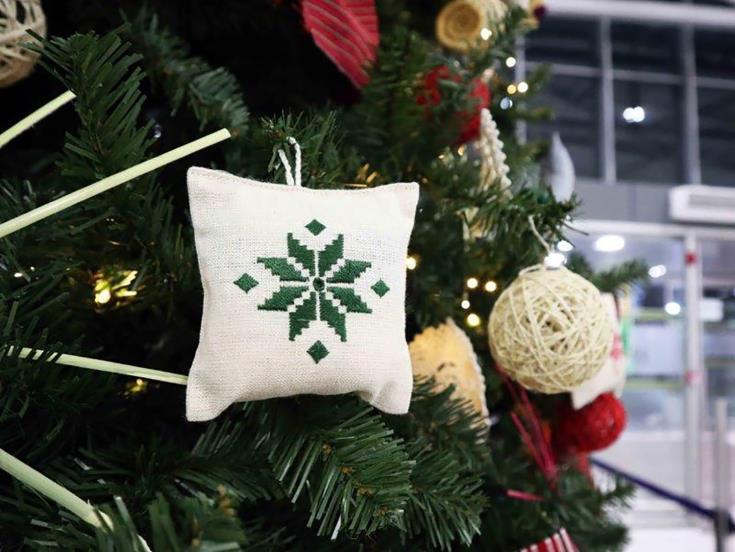 Στολίδια από λευκαρίτικο κέντημα, σμιλί και καλαθοπλεκτικές κατασκευές, κοσμούν το Χριστουγεννιάτικο δέντρο που βρίσκεται στην αίθουσα αναχωρήσεων επιβατών της Hermes Airports, στη Λάρνακα, το οποίο φωταγωγήθηκε στην παρουσία της Υπουργού Ενέργειας, Εμπορίου και Βιομηχανίας Νατάσας Πηλείδου, την Παρασκευή.