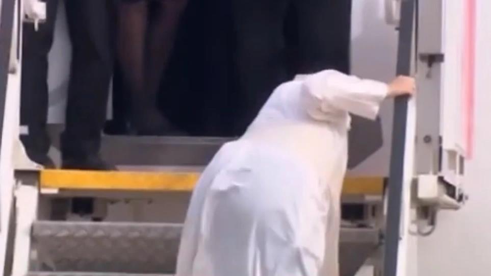 Οι ισχυροί άνεμοι που έπνεαν στην ευρύτερη περιοχή του αεροδρομίου «Ελευθέριος Βενιζέλος» σήμερα, είχαν σαν αποτέλεσμα ο Πάπας Φραγκίσκος να χάσει την ισορροπία του και να παραπατήσει, την ώρα που ανέβαινε στο αεροπλάνο για να αναχωρήσει από την Ελλάδα, νωρίτερα το πρωί της Δευτέρας.