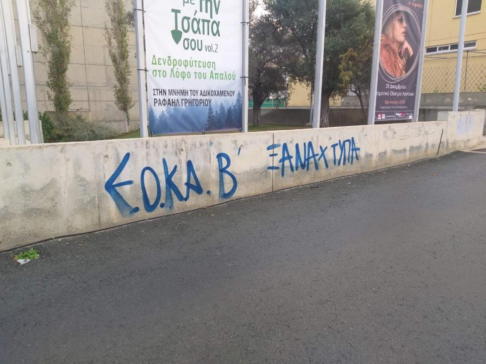 Nυχτοβάτες προκάλεσαν βανδαλισμούς στο Δημαρχείο Λατσιών, καθώς έγραψαν με σπρέι συνθήματα για την ΕΟΚΑ Β'. Ενέργεια η οποία έφερε έντονες αντιδράσεις, καθώς όπως διαφάνηκε οι βανδαλισμοί έγιναν ενόψει της εκδήλωσης που πραγματοποιείται με την ευκαιρία της Μέρας Δημοκρατικής Αντίστασης, που γιορτάζεται στις 7 Δεκεμβρίου.