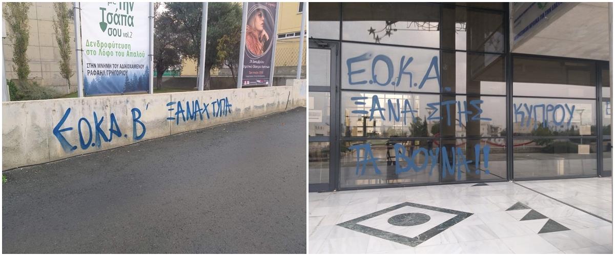 Νυχτοβάτες προκάλεσαν βανδαλισμούς στο Δημαρχείο Λατσιών-«ΕΟΚΑ Β' ξανακτύπα» (pics)