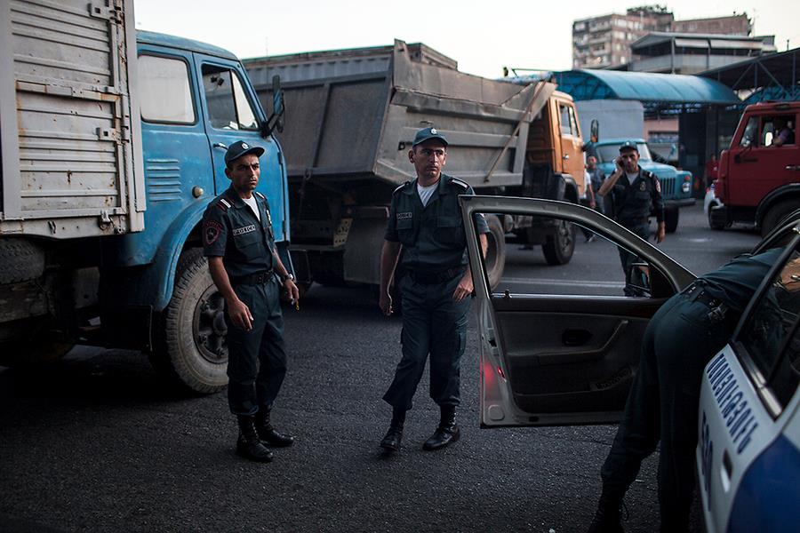 Νωρίτερα μέσα στην ημέρα, μια ένοπλη ομάδα κατέλαβε το κτίριο της αστυνομίας στο Ερεβάν.