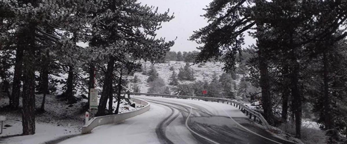 Λόγω ελαφριάς χιονόπτωσης, οι δρόμοι Τροόδους – Προδρόμου, Πλατρών – Τροόδους και Καρβουνά – Τροόδους, είναι ανοικτοί μόνο για οχήματα με κίνηση στους 4 τροχούς ή εφοδιασμένα με αντιολισθητικές αλυσίδες.