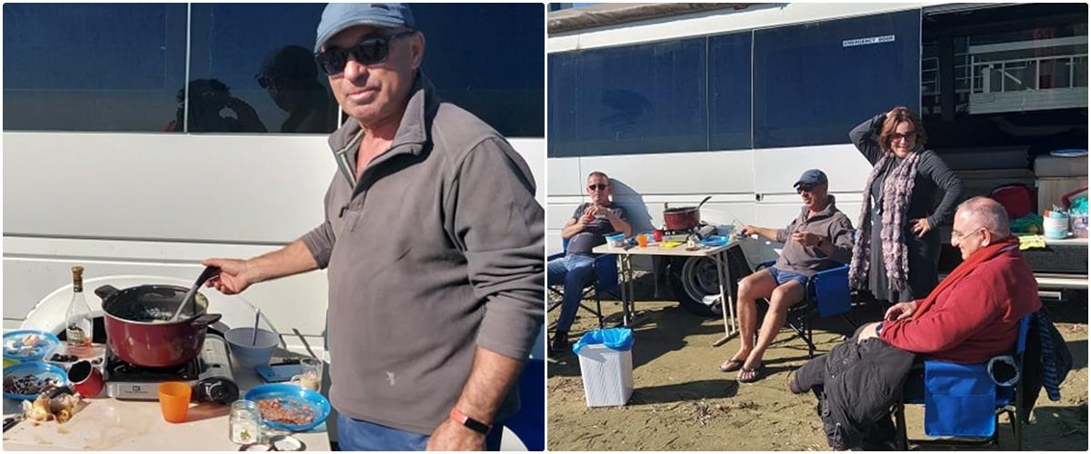 Ο πρωτότυπος εορτασμός τους τράβηξε τα βλέμματα όσων βρέθηκαν στην παραλία Μακένζι, τους οποίους κέρασαν ζεστή σούπα και μπόλικο κρασί.