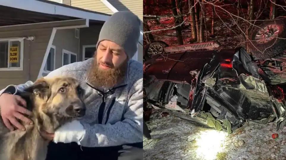 Ο οδηγός του, το αφεντικό της σκυλίτσας, όπως και άλλο ένα πρόσωπο, είχαν εκσφενδονιστεί έξω από το αυτοκίνητο, είχαν τραυματιστεί και άρχιζαν να έχουν υποθερμία.