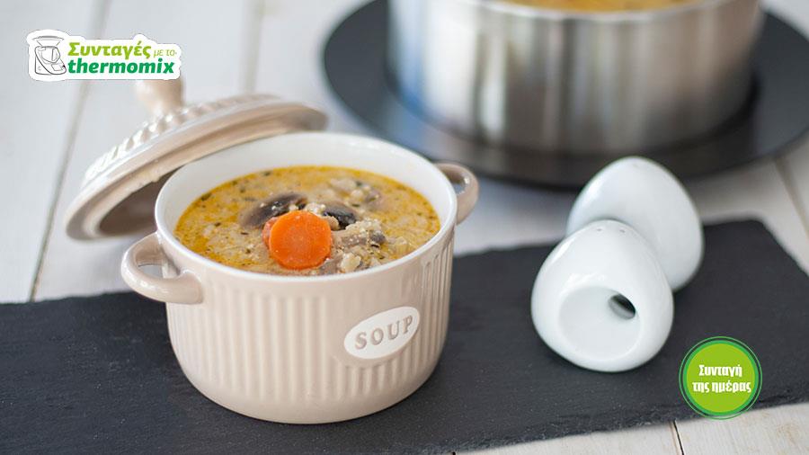 Σούπα με μανιτάρια, κοτόπουλο και άγριο ρύζι