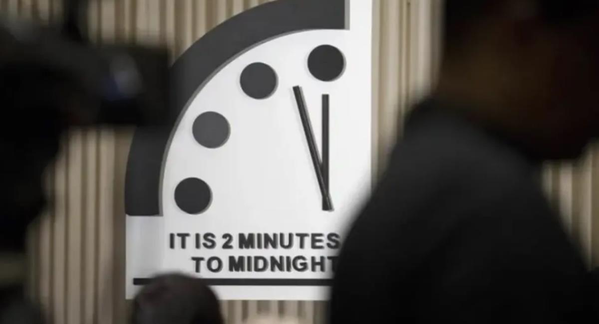 Εκατό δευτερόλεπτα χωρίζουν, έτσι, τον κόσμο από την καταστροφή. Οι δείκτες του ρολογιού δείχνουν ακριβώς 23.58 και 20 δευτερόλεπτα.