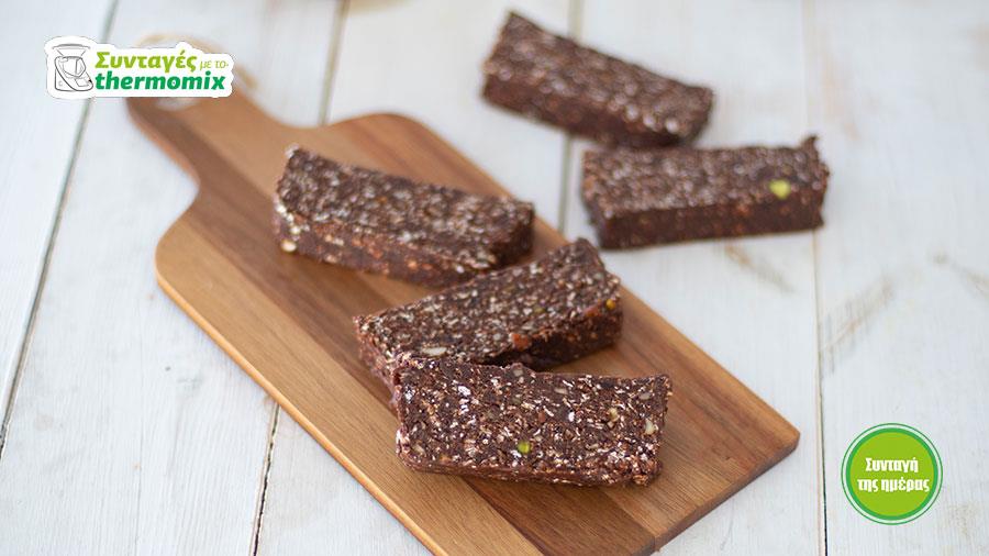 Μεταφέρετε τη φόρμα στο ψυγείο να παγώσει για ένα μισάωρο. Στη συνέχεια κόψτε σε μπάρες.