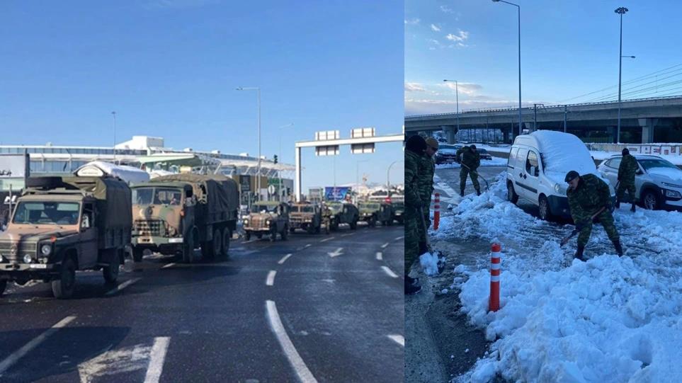 Κολλημένα στο χιόνι 300 αυτοκίνητα στην Αττική Οδό, φαντάροι φτυαρίζουν στο οδόστρωμα (pics)